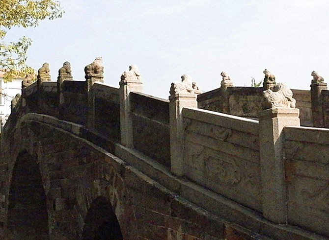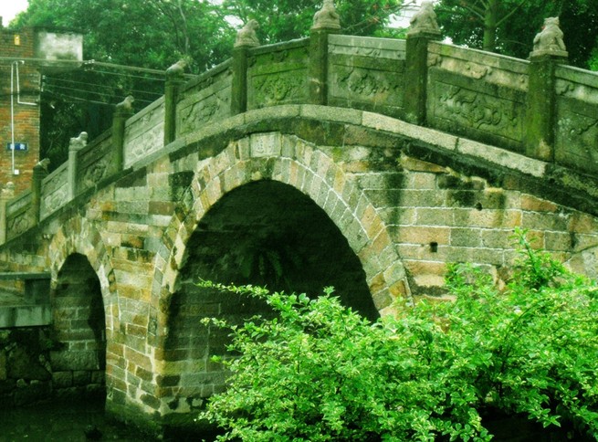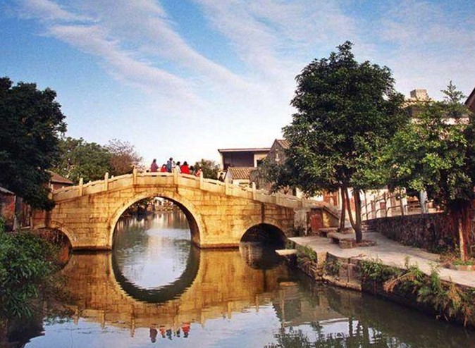 該橋兩邊斜道不砌石級,版權(quán)所有山東聊城聊之旅國際旅行社有限公司,轉(zhuǎn)載必究!行人來往象上下斜坡一樣,古代車馬過橋,可暢通無阻。站在橋上左右眺望,寬闊的河涌兩岸,整齊的石砌墻緊靠河壁。蕉林蔗地上,舊日店鋪基礎(chǔ)依稀可辨,為我們勾勒出一幅繁榮的古代水鄉(xiāng)市集景象。