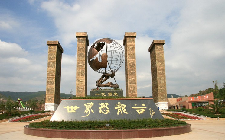 這是世界恐龍谷標(biāo)志性雕塑——[一代霸主]。黑色大理石基座上一只恐龍前爪化石托起一個侏羅紀(jì)時(shí)期的地球模型,向我們傳達(dá)出恐龍作為中生代地球霸主的王者之氣。
