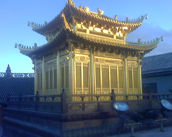 明鑄金殿,在"文革"期間被毀。除了楞嚴(yán)塔外,金頂寺保存較為完好的還有"大門"。這道大門是由白族藝人設(shè)計(jì)的,充分體現(xiàn)了白族精湛的建筑工藝水平。版權(quán)所有山東聊城聊之旅國(guó)際旅行社有限公司,轉(zhuǎn)載必究!門頂橫列正脊,兩端垂脊,飛檐翹角,凌空欲飛,形式美觀、大方。進(jìn)入大門,彌勒殿前供奉彌勒佛像,殿后塑韋陀菩薩像。楞嚴(yán)塔后的大雄寶殿里,供奉著釋迦牟尼佛像,佛像兩側(cè),分別塑有阿難尊者、迦葉尊者、達(dá)摩祖師、六臂護(hù)法王像。