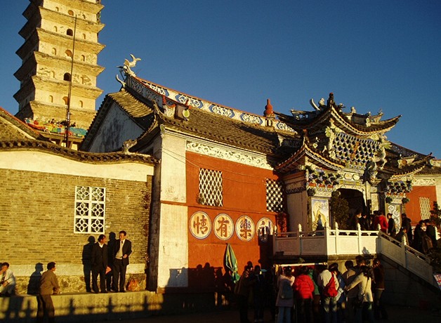 金頂寺位于雞足山主峰天柱峰極頂,海拔3240米,東距祝圣寺55公里。天柱峰因高峻挺拔,狀如擎天巨柱而得名,又因在此可東觀日出,南觀彩云,西觀蒼洱,北觀玉龍雪山而被稱為"四觀峰"。版權(quán)所有山東聊城聊之旅國(guó)際旅行社有限公司,轉(zhuǎn)載必究!現(xiàn)在的金頂寺,由睹光臺(tái)、大門、彌勒殿、楞嚴(yán)塔、大雄寶殿等組成,是游覽雞足山必去的重要景點(diǎn)。