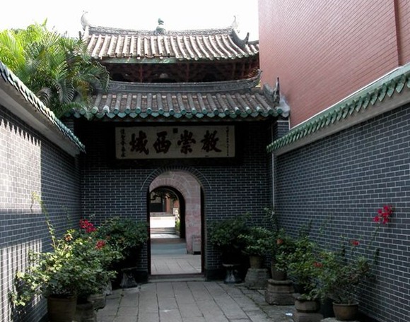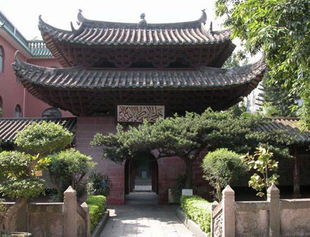 懷圣寺又名獅子寺,俗稱光塔寺,是中國四大古代清真寺之一,也是我國現(xiàn)存最古老的清真寺建筑。位于越秀區(qū)光塔路56號,被列為廣東省省級重點文物保護單位。唐、來以來,廣州為我國海外貿(mào)易的主要港口,那時廣州的阿拉伯富商最多,他們在當?shù)卣闹С窒?,修建了一座?guī)德宏大的清真寺,即今日的懷圣寺,寺的命名表達了中外教民對圣人穆罕默德的尊從和懷念。該寺禮拜大殿置于院庭的正面,它是3間帶周圍廊、歇山重檐綠琉璃,帶斗拱的古典式建筑,巍然聳立在帶雕石欄桿的大平臺上,充分顯示了大殿的高貴威嚴、石欄桿板上的雕刻各異,有葫蘆、扇子、傘蓋、花卉、獅子、游魚等物,極為活潑生動。大殿內(nèi)部潔白明亮,用木地板及三面拉門,殿內(nèi)裝飾雖少,但很整潔大方。
