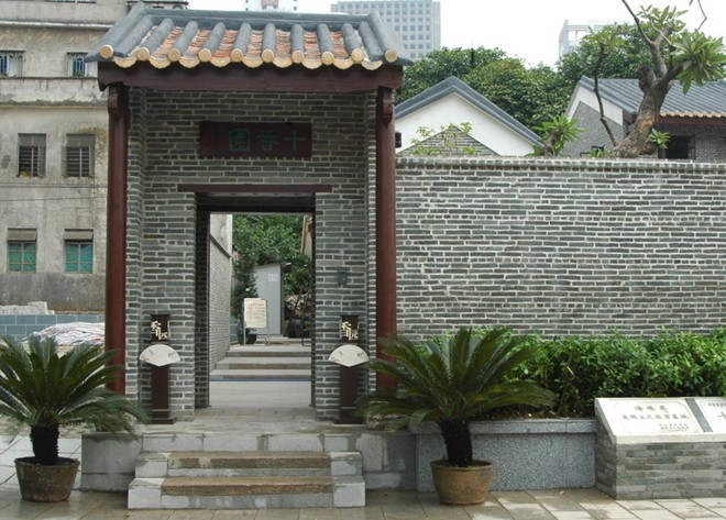 十香園位于廣州市海珠區(qū)昌崗中路懷德大街3號。為清末著名畫家居廉、居巢兄弟的居住、作畫及授徒之所。占地640平方米,四周以青磚砌墻圍成小院。園內(nèi)種有寫生用的素馨、茉莉等10種香花,故名十香園?,F(xiàn)存紫梨花館一座。館內(nèi)西部為居巢授徒處,嶺南畫派創(chuàng)始人高劍父、陳樹人均曾學畫于此。著名作家朱千華先生在其園林文化隨筆集《雨打芭蕉落閑庭?嶺南畫舫錄》中,對“十香園”有詳盡記述。