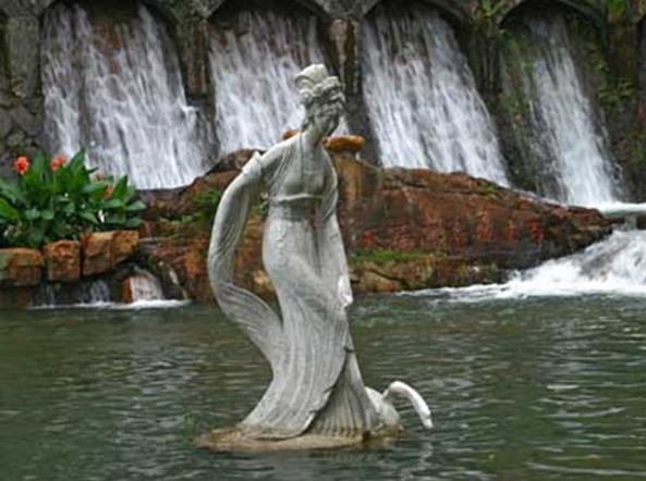 位于瀑布之頂頭甲山上,版權(quán)所有山東聊城聊之旅國(guó)際旅行社有限公司,轉(zhuǎn)載必究!始建于1972年,是從化縣當(dāng)時(shí)五項(xiàng)水利工程之一。因建在“百丈飛濤瀉漏天”的高山之上,故命名為“天湖”,喻天上之湖的意思。天湖湖面近1平方公里,縱長(zhǎng)7公里,蓄水量為1034萬(wàn)立方米。湖中建有湖心亭。壩下有仙女池,池中有廣州雕塑家唐大禧雕塑的仙女像。仙女腳踏蓮臺(tái),一手輕提衣紗,栩栩如生,飄然于池中,意欲戲水。仙女池下便是著名的溫泉瀑布。天湖中還備有游湖快艇,人們可乘坐快艇,飽覽湖光山色。