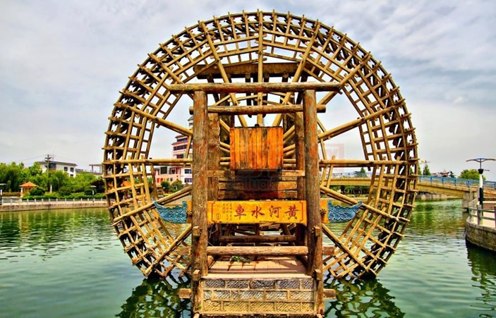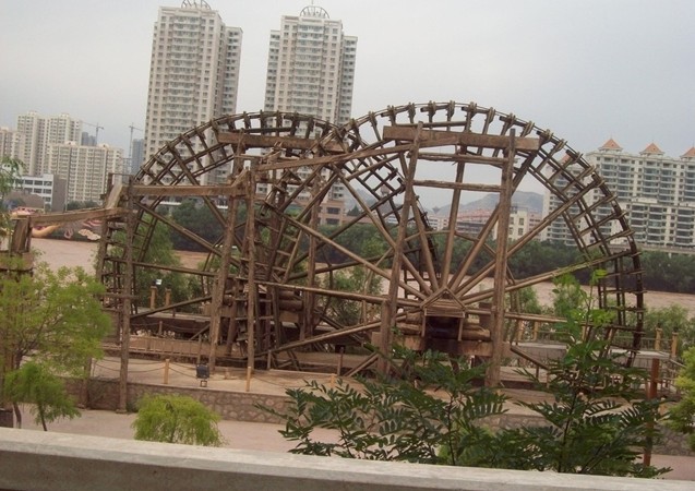 黃河水車幾百年來(lái),世事滄桑,水車在原有引流灌溉的主要功能上,同時(shí)附加了豐富的旅游內(nèi)涵,我們所看到的龍灣水車是1999年為發(fā)展石林旅游而重新修建的,水車有48個(gè)水斗,輻條36根,軸心到地面是7.8米,水車直徑為8米,它利用水流推動(dòng)掛水板,驅(qū)使水車徐徐轉(zhuǎn)動(dòng),水斗依次舀滿水,緩緩上升,至上方時(shí),水斗口朝下,將水傾倒掌盤,再入水槽,引流水渠。