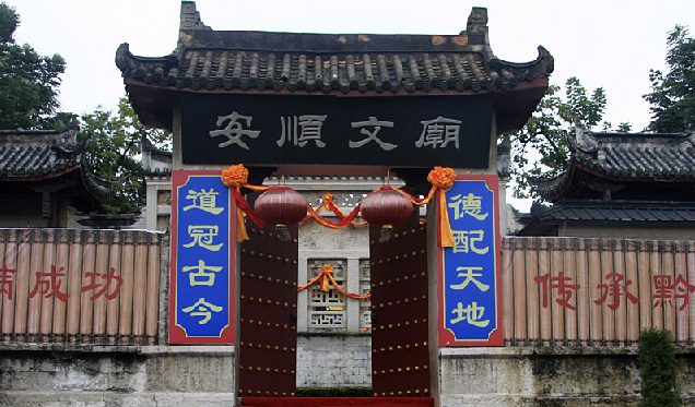安順文廟始建于明代洪武初年(約公元1368年),天啟二年(公元1622年)毀于兵燹,天啟上年(1624年)重建。后經(jīng)清康熙七年(1668年)、康熙五十五年(1716年)、道光十七年(1837年)幾次增建、修復(fù),臻于完備,現(xiàn)存建筑22處。