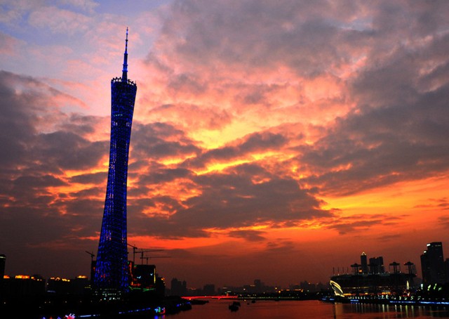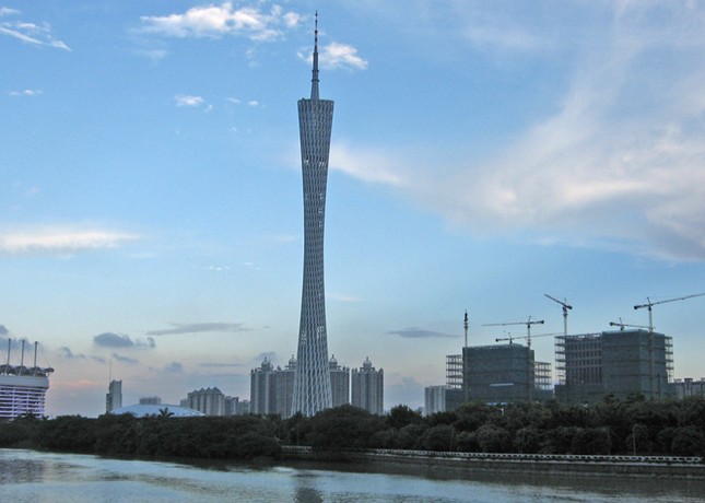 廣州塔(Canton Tower),建于廣州市海珠區(qū)雙塔路,距離珠江南岸125米,與海心沙島及珠江新城隔江相望。是一座以觀光旅游為主,具有廣播電視發(fā)射、文化娛樂和城市窗口功能的大型城市基礎(chǔ)設(shè)施,為2010年在廣州召開的第十六屆亞洲運動會提供轉(zhuǎn)播服務(wù)。該塔由廣州建筑和上海建工集團負責(zé)施工,已于2009年9月竣工。廣州塔塔身主體450米(塔頂觀光平臺最高處454米),天線桅桿150米,總高度600米,取代加拿大的CN電視塔成為當(dāng)時世界第二高電視塔,次于美國北達科塔州KVLY電視塔(高度628.8米,1963年7月14日動工,1963年8月13日竣工),世界第一高自立式電視塔,現(xiàn)僅次于日本東京天空樹塔的自立式電視塔(高度634米,2008年7月14日動工,2012年2月29日竣工),為世界第二高自立式電視塔也成為廣州的新地標(biāo)。廣州塔已于2010年9月29日正式對外開放,10月1日起正式公開售票接待游客。