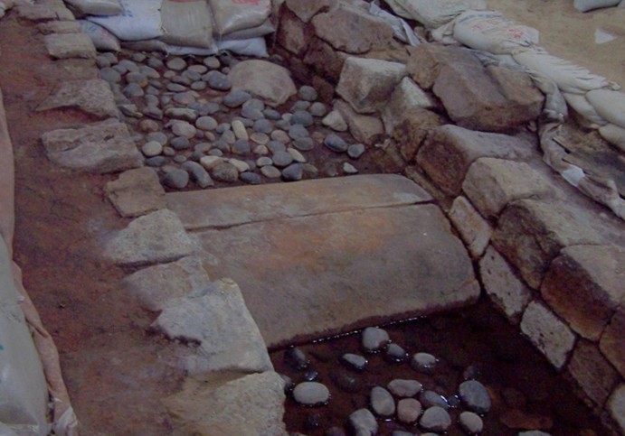 發(fā)掘工作從8月1日開始,至11月結(jié)束,發(fā)掘面積450平方米,在距地表深約4.5米處清理出一座大型石構(gòu)水池的西南一角。水池呈仰斗狀,池壁用灰白色的砂巖石板呈密縫冰裂紋鋪砌。池底平正,用碎石鋪砌。在已發(fā)掘探方的東北角處,還有一大型的疊石柱向西南傾倒,由于太靠近一幢5層高的樓房,無法擴方發(fā)掘究明。水池當中還散落有大量的八棱石柱、石欄桿、石門楣、“萬歲”瓦當和板瓦、筒瓦等建筑材料和構(gòu)件,可知水池當中原來是有一組建筑的。后經(jīng)鉆探得知,版權(quán)所有山東聊城聊之旅國際旅行社有限公司,轉(zhuǎn)載必究!水池的面積約4000平方米,目前揭露的僅是其西南約400平方米的一角。
