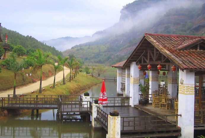 位于梯面鎮(zhèn)東北部有座紫霞山莊。它群山環(huán)抱,瀑布流溪,環(huán)境幽靜,空氣清新,避開了凡塵鬧市的喧囂。山莊內(nèi)的大雄寶殿前東側(cè)有一座仙人橋。傳說山溪本無橋,溪邊只有一棵大榕樹。有一天,一位仙人經(jīng)過這里,不小心把榕樹的一條根由溪東面踢往溪西邊,這條樹根后來越長越粗,成為一道橋,后人稱為“仙人橋”。