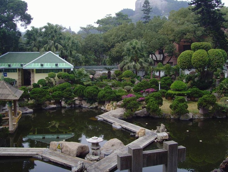 福建菽莊花園建于1913年,位于福建鼓浪嶼島南部,面向大海,背倚日光巖,原是地方名紳林爾嘉的私人別墅,園主人以他的字“叔臧”的諧音命名花園,1955年獻作公園。菽莊花園利用天然地形巧妙布局,全園分為藏海園和補山園兩大部分,各景錯落有序,園在海上,海在園中,既有江南庭院的精巧雅致,又有海鷗飛翔的雄渾壯觀,動靜對比,相得益彰。園內(nèi)還有四十四橋和十二洞天等景點。