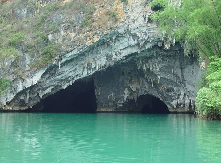 從洞中透過入口處,三角形的洞口如畫家定景框,把遠處青山和近處翠巒、綠竹、田疇、水面和垂釣漁人組成絕妙的畫面,山如寶石,人若游仙,水光山色,交相襯托,令游客傾倒。 盤陽河自巴馬甲篆鄉(xiāng)吉屯白熊洞潛入山下,形成了1500多米的伏流暗河,然后從此洞流出,是盤陽河注入紅水河前的最后一處伏流出水口。版權(quán)所有山東聊城聊之旅國際旅行社有限公司,轉(zhuǎn)載必究!洞中鐘乳石千姿百態(tài),各肖物類,水碧石凈,光環(huán)影繞,特別是伴隨著游船的前行,在每隔兩三百米就有一個天窗而形成日光月色的光感效果及在光與影不斷變幻的時光隧道中,猶如經(jīng)歷了“三天三夜”的神奇感受而令人興奮不已。