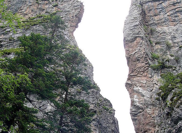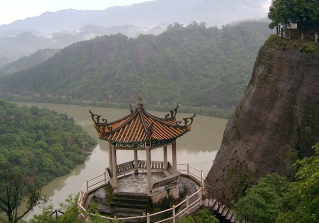 一線天又名靈巖,位于武夷群峰的西南端,是武夷的最奇的巖洞,素有“鬼斧神工之奇”的稱號。一線天,存在在九曲溪二曲南面的一個幽邃的峽谷中。里面一座巍然挺立的巨石,長數(shù)百丈,高千仞,名“靈巖”。巖端傾斜而出,覆蓋著三個毗鄰的巖洞:左為靈巖洞,中為風洞,右為伏羲洞。從伏羲洞而入巖內,到了深處,抬頭仰望,但見巖頂裂開一罅,就像是利斧劈開一樣,相去不滿一尺,長約一百多米,從中漏進天光一線,宛如跨空碧虹,這就是令人嘆為觀止的一線天。