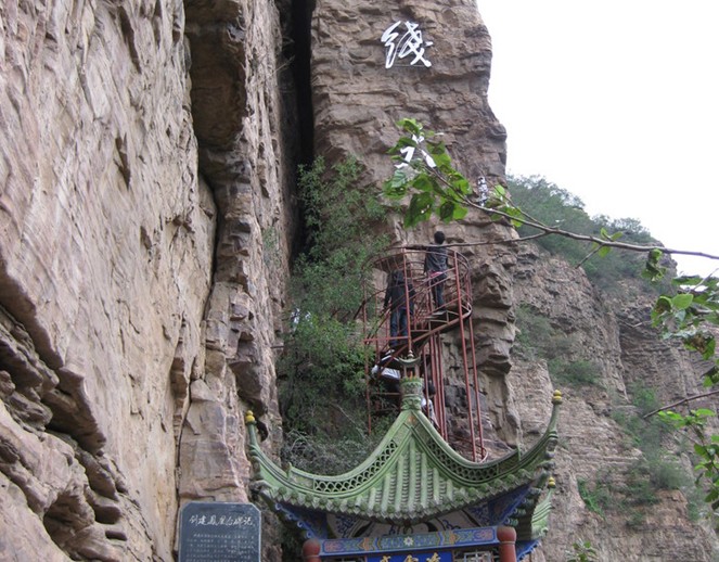 一線天南面,與之相對立的,是樓閣巖。這是一座壁立如屏的石巖,半壁上有幾處洞穴,相傳這就是所謂的神仙樓閣。在它左邊,又有一巖,名蘭巖。巖壁石刻縱橫。巖下一石,倚于崖壁,石徑伸入其間,如同一道關隘,版權所有山東聊城聊之旅國際旅行社有限公司,轉載必究!號稱天門。巖前的亂石堆中還有一個妙趣橫生的螺螄洞。