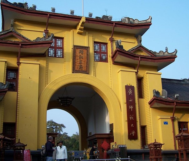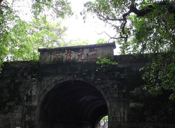三元及第坊在靖江王城南面正陽(端禮)門上。清代學(xué)者阮元任兩廣總督時為連中“三元”的陳繼昌所立。三元, 是省級的“鄉(xiāng)試”、全國的“會試”和皇帝親自主持的“殿試”均名列第一, 分別獲得“解元”、“會元”、“狀元”稱號的縮略。自唐代以科舉取士1000多年來, 連中三元的僅13人, 清代兩百多年中僅有2人。陳繼昌是臨桂人, 把用巨石鐫刻的牌坊置于王城正門之上, 是封建社會給科舉成名者的至高榮譽。