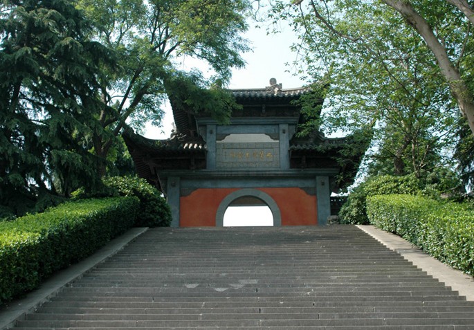 享殿后是墓區(qū),通往墓臺(tái)的石板神道為古松掩映,旁立4對(duì)石人石獸,粗獷簡(jiǎn)約,典型的明代雕塑風(fēng)格。墓臺(tái)四周有仿白玉欄桿,中立“西楚霸王衣冠家”碑石一方。墓成橢圓狀,左側(cè)有地下墓道。