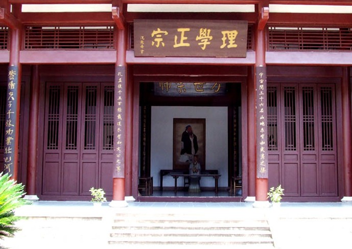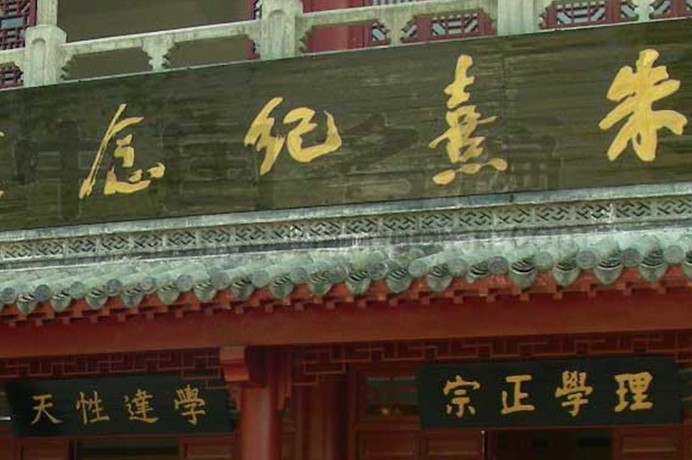 聯(lián)曰:“接伊洛之淵源,開閩海之鄒魯”,聯(lián)文說明朱熹的理學(xué)思想已成為我國(guó)哲學(xué)發(fā)展史上的一個(gè)承上啟下的重要階段。這副楹聯(lián)懸于大門顯得端莊典雅,醒目點(diǎn)題。大殿前有一副“致廣大而盡精微,極高明而道中庸”的對(duì)聯(lián),表述了朱熹的哲學(xué)體系博大精深和儒家人生處世的規(guī)范。