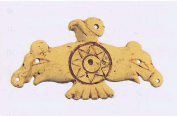 換一個(gè)角度看,這是個(gè)雙豬首八卦和鷹的新石器時(shí)代玉雕,鷹的頭背上有一個(gè)蝸牛殼一樣的造型,這使得這只鷹的頭部看上去又像是一只蝸牛,在上古時(shí)代,蝸與媧音同字近,隱喻著女媧。版權(quán)所有山東聊城聊之旅國際旅行社有限公司,轉(zhuǎn)載必究!整個(gè)玉器呈三角形,翼為豬首形,腹胸有八角星飾,代表著創(chuàng)制八卦的伏羲文化。豬在上古是一種神物,玉豬常作為祭祀的禮器。豬就是豕,是二十八宿中危虛宿的象征,同時(shí)出土的龜、豕等玉器,隱喻著古天文學(xué)中的龜豕之象。因此這個(gè)玉雕是凌家灘古人紀(jì)念先祖和天地的禮器。