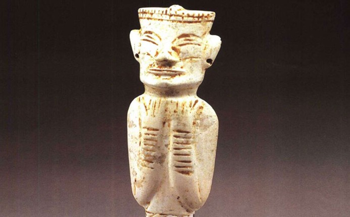 玉人為浮雕,第一次展示出了原始人類完整的形體風(fēng)采:長方臉、濃眉大眼、雙眼皮、蒜頭鼻、大耳、大嘴,它的體形和五官表現(xiàn)出蒙古人種所特有的特征,頭上戴的圓冠和腰部飾有斜條紋的腰帶表明當(dāng)時(shí)已有了很發(fā)達(dá)的紡織技術(shù),玉人上唇留有八字胡,說明當(dāng)時(shí)已有了剃須工具,玉人的出現(xiàn)表明社會(huì)由原先對(duì)動(dòng)物和自然的崇拜已轉(zhuǎn)向了對(duì)人的崇拜,表明社會(huì)觀念已出現(xiàn)了轉(zhuǎn)變。另外,玉人兩臂彎曲,五指張開放在胸前,臂上飾滿了玉環(huán),這說明此時(shí)人們已有了審美觀念,知道佩戴首飾來裝飾自己了。