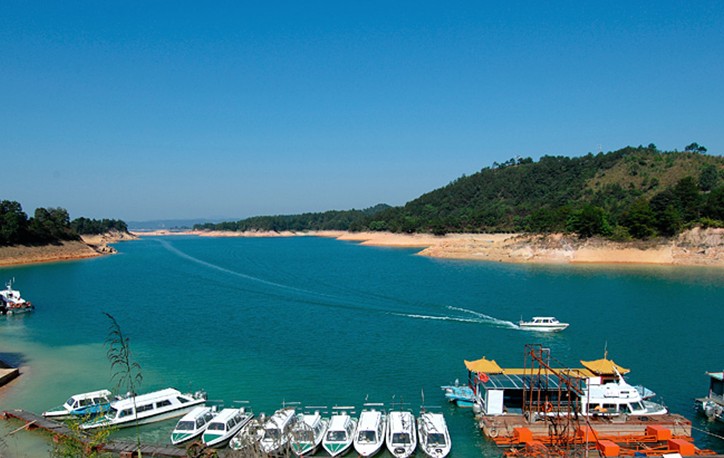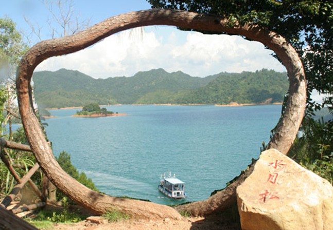 龍鳳島的位置處在萬綠湖心,東部象龍,西部似鳳,整個島嶼如龍飛鳳舞,故名“龍鳳島”,也是萬綠湖中的愛情島。春天,龍鳳島繁花似錦,新綠映月,松枝繁茂,濃蔭蔽日。而楓葉則是最讓您賞心悅目的了,上島后,只見楓葉映著碧水藍天,顏色灼人雙目,艷麗之極,繽紛之極。龍鳳島上還有大自然鬼斧神工創(chuàng)造的各種各樣如龍似鳳的奇松,有的如龍戲鳳,有的如雙龍、有的如水月天成、有的如仙鶴展翅,讓您盡情領(lǐng)略萬綠湖自然之神奇。
