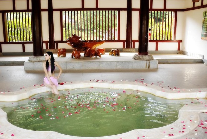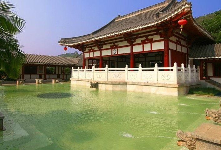 龍源溫泉度假城位于擁有“溫泉之都”美譽的河源斷裂地帶的中段,背靠由珍貴的水晶石構(gòu)成的“水晶山”,溫泉水從地下100多米深處透過古老的水晶巖層涌出,水質(zhì)更具靈性,富含40多種礦物質(zhì),硅酸、鋰、鍶、鋅、二氧化碳等珍貴地?zé)岬V泉水。龍源溫泉度假城擁有13 個純天然泉眼,勘測日流量近萬噸,溫泉水資源十分豐富,最高溫度68℃,具有良好的增強免疫力,活化細胞,養(yǎng)顏瘦身等保健療效。