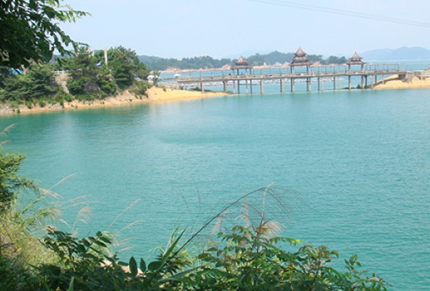 水月灣是根據(jù)小說《鏡花緣》建成的,《鏡花緣》里記載百花仙子降生于廣東河源縣水月村。經過一條長長的走廊親水長廊,99個我國上下五千年來各名家所書的“水”字配上繽紛的彩繪說明,讓人領略到的是悠久水文化的獨特魅力。在得月茶軒,一杯湖水沏泡的清茶,一碟客家風味小吃,品味到的是萬綠湖最秀麗的水光山色。躍入親水泳場,演繹的又是萬綠湖不一樣的激情,讓人親近純潔,倍感身心洗禮;玩轉各種水上娛樂項目,這樂趣,非此地不可得。