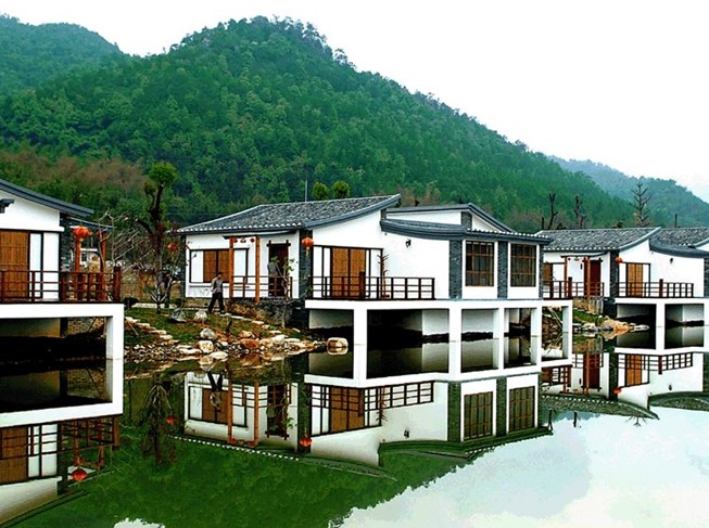葉屋坪湖邊漁家度假區(qū)設立在萬綠湖罕有的廣闊湖灘平地和天然草地上,背枕大南山,身臨萬綠湖,首期建設有高尚后現(xiàn)代客家風格的漁家度假別墅,周圍配有田園菜地、牧場、稻田、釣魚場、野趣燒烤場、沙灘排球、野外賬篷區(qū)、劃船、劃竹排、干塘抓魚、摸蝦、騎牛、天然泳場等項目。同時設有完善的商務會議設施與獨具特色的土家餐廳。