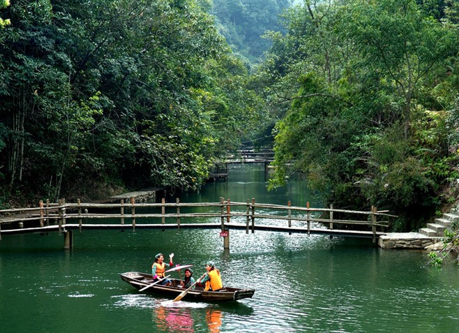 土匪窩探秘探險游覽區(qū)隱逸于茫茫天子山脈中,連綿3.5公里,集俏、隱、幽、奇、險、古、拙于一體。游覽區(qū)內(nèi)奇峰怪石,美潭跌水、原始森林、古樹奇花等塑造了千姿百態(tài)、異趣橫生的、爭奇斗艷的自然形態(tài),顯示了大自然鬼斧神工的杰作。設有山寨大門、生態(tài)環(huán)保木棧道、馬蹄路、神奇的滿歸泉、姻緣同心鎖、樹屋、機關(guān)陣、練武場、土匪雞賽跑、套土匪雞、抓土匪蛋、冰泉浴等,以原生態(tài)自然景色為主導,使游客置身其中,深度參與和體驗,釋放原始野性、融入自然。
