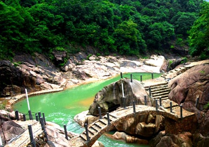 大自然的鬼斧神工賜予了三寨谷獨特的石河奇觀,這里有仙人古井、仙人腳印、不倒石、飛來石、手足石、龜背石……簡直是一個"萬石園";石是山之骨,水是山之魂,三寨谷最具靈韻飛揚之處還要算昆龍瀑布,版權所有山東聊城聊之旅國際旅行社有限公司,轉載必究!瀑布從山間凌空而出,蕭蕭灑灑,飄舞若素練,姿態(tài)曼妙,宛如凌波仙子,"仙子"下的仙女潭更是游泳戲水的最佳去處。除了大自然景觀,三寨谷還蘊涵著豐富的人文景觀,這里有牛郎織女的故事、八仙之一的何仙姑修煉成仙的遺址壽龜石,還有明朝嘉靖年(500多年前)的造紙廠遺址等。