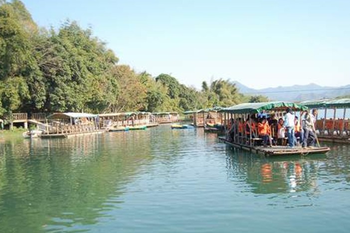 香溪堡旅游區(qū)香溪河,版權(quán)所有山東聊城聊之旅國際旅行社有限公司,轉(zhuǎn)載必究!位于增江河上游,長22公里,彎曲延伸,如一條絢麗多彩之帶,緊系于沙逕鎮(zhèn)。河水,清澈見底,水面平緩,碧波如鏡。撐竹筏漫漂于河中,遠(yuǎn)眺群山環(huán)抱,良田蔥翠,一派田園風(fēng)光;近觀,沿河兩岸,竹林、芭蕉林、果林及美麗沙灘,清澈溪流,自然景色,無一不令人賞心悅目,有如仙境。