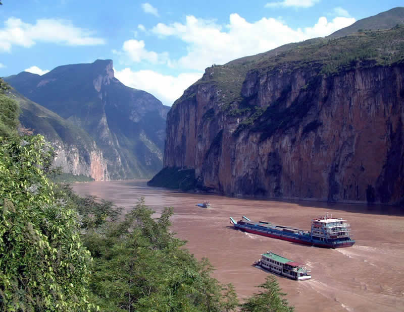 奔騰咆哮的長江,一進(jìn)峽谷便遇上氣勢(shì)赫赫的夔門。夔門兩岸的山峰,陡削如壁,拔地而起,把滔滔大江逼成一條細(xì)帶,蜿蜒于深谷之中。這里河寬只有一、二百米,最窄處不過幾十米;而兩岸主要山峰可高達(dá)1000-1500米。這里峽深水急的江流,綿延不斷的山巒,構(gòu)成了一幅極為壯麗的畫卷。正如郭沫若《過瞿塘峽》一詩所云:“若言風(fēng)景異,三峽此為魁”。 瞿塘峽以“雄”著稱。西端入口處,兩岸斷崖壁立,高數(shù)百丈,寬不及百米,形同門戶,名“夔門”,素有“夔門天下雄”之稱;左邊的名為赤甲山,版權(quán)所有聊城聊之旅國際旅行社有限公司,轉(zhuǎn)載必究!右邊的名為白鹽山,不管天氣如何,總是迂出一層層或明或暗的銀輝。長江辟此一門,浩蕩東瀉,兩岸懸崖峭壁如同刀削斧砍,山高峽窄,仰視碧空,云天一線,峽中水深流急,江面最窄處不足五十公尺,波濤洶涌,奔騰呼嘯,令人驚心動(dòng)魄。
