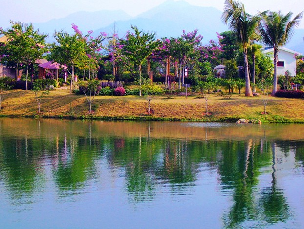 度假區(qū)內別墅客房設計及設施都是按五星級標準籌建,以嶺南的藝術建筑及高檔的中西結合型度假別墅更具獨特風格。目前設有1000多個床位,小島別墅山莊、溪邊別墅山莊以及山中別墅高雅舒適、寬敞明亮,其中小島別墅四面環(huán)水、風景優(yōu)美,到處都充滿了詩情畫意的景象!