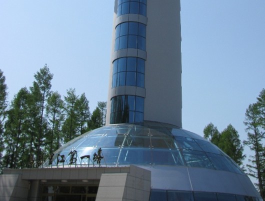 烏蘇里江第一塔坐落在中俄邊境烏蘇里江畔、黑龍江珍寶島濕地國家級自然保護(hù)區(qū)實(shí)驗(yàn)區(qū)內(nèi)。于2007年9月正式奠基開工,2009年5月交付使用,總投資680萬元,塔高55米,建筑面積740平方米。塔體為鋼架混凝土結(jié)構(gòu),外部玻璃幕墻半球造型,高空遠(yuǎn)看宛如一顆耀眼的明珠鑲嵌在烏蘇里江畔,散發(fā)著奪目的光輝。