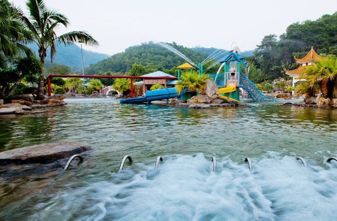 在中國第一個溫泉之鄉(xiāng)——恩平市,有一座被環(huán)嶺群峰擁抱著的溫泉山,山下的三十多處自噴溫泉,日流量為6000立方米,其溫泉水溫高達73℃,水質晶瑩幼滑,并含有偏硅酸、氟、氫、硫等多種有益于人體健康的元素,是世界少有的滑溫泉,這就是帝都溫泉。