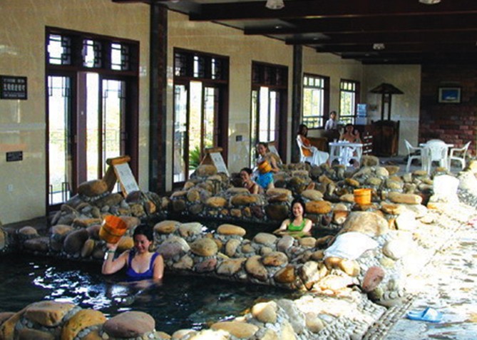 本世紀中葉,雖有科學家倡議,辟金山溫泉為地熱能源,惜因國力所限,未能如愿。近年,當地財政斥資6億元,辟地800余畝,于溫泉四周,建成溫泉景區(qū)、度假酒店、健身中心及豪華別墅,雖溫泉日流出水量2000余噸,以每人每日用水一噸計,年可接待游客80萬眾,但目前客房僅200余間,每于周末,人滿為患總統套間亦不閑置,有遠客欲求于度假酒店一宿而不可得,唯有沐后復驅車折返市區(qū)。岑副市長介紹,當局已全力投資,籌建國際會議中心、會員大夏等配套設施,期至后年,當可年接待60萬人次,一座溫泉新城,于其時也,將矗立于金山吉水之間。