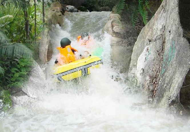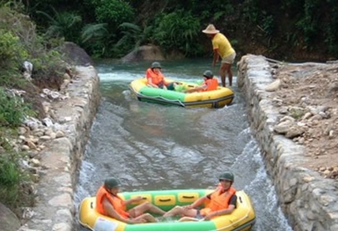 龍?zhí)秿{漂流位于臺(tái)山第二高山—北峰山南麓。龍?zhí)秿{漂流河全程長(zhǎng)約5公里,漂流時(shí)間約99分鐘,河道崎嶇彎曲、高低起伏,漂流河中奇形怪狀的大石組成一道極有觀賞性的石林景觀。最大落差30多米的斜坡令你驚心動(dòng)魄、尖叫聲不停,體會(huì)刺激漂流的極大樂(lè)趣,漂流過(guò)程中讓你領(lǐng)略大自然的風(fēng)采,植被茂盛。在此連綿起伏的山巒中間,穿流著從巖縫中滲出會(huì)聚的泉水,集泉成溪,在山峽中穿石繞壁,川流不息。由雙人充氣漂流艇,沿著青山碧水、無(wú)限風(fēng)光中漂流直下。另你無(wú)限幻想“飛流直下三千尺”,其中的奧妙感受。