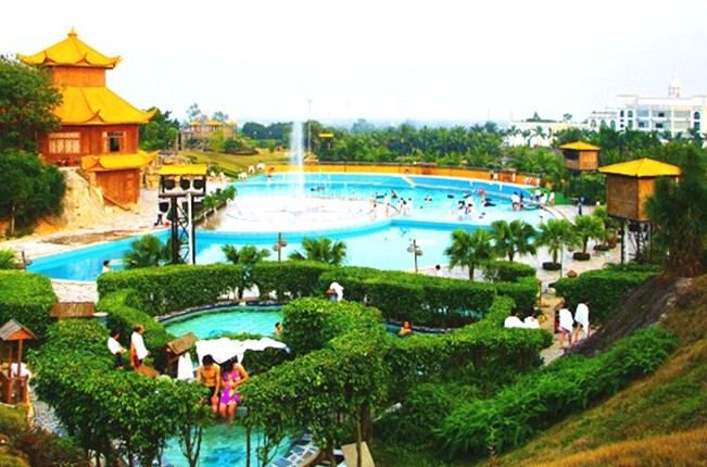 富都溫泉水富含納、鋰、偏硅酸等多種具有醫(yī)療價(jià)值的礦物元素,浴后皮膚爽滑,對(duì)肥胖癥、風(fēng)濕病、各類皮膚病均有良好療效。溫泉區(qū)設(shè)有大小溫泉池100多個(gè),其中有:水療按摩池、花池、藥療池、礦物療養(yǎng)池、酒池、冰池、山水游泳池、熱炕床、音樂溫泉噴泉的士高、水上樂園 。