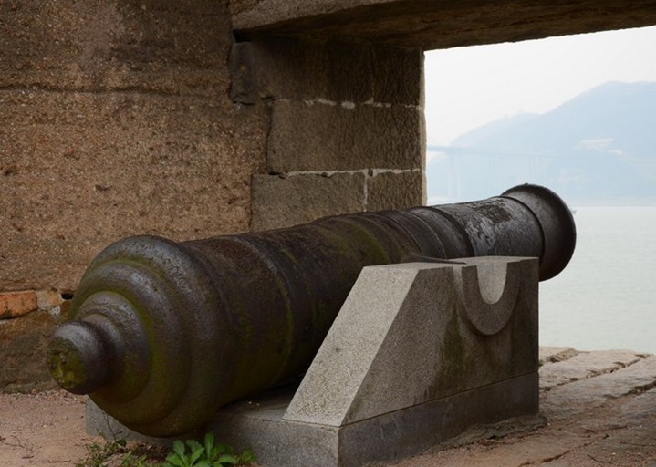 崖門(mén)古炮臺(tái)位于新會(huì)崖門(mén)出海水道東岸的古井鎮(zhèn)官?zèng)_村,最早設(shè)置于清康熙五十七年(1718年),并形成雛形,后于清嘉慶十四年(1809年)正式設(shè)立興建。崖門(mén)古炮臺(tái)雄踞新會(huì)崖山,倚山面海,緊緊扼守著珠江八大出??谥?mdash;—崖門(mén)通往南海的進(jìn)出水道。