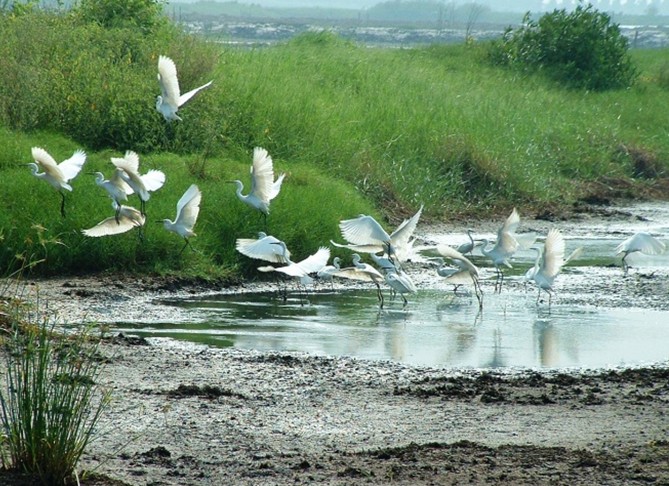 新會銀湖灣阡陌縱橫,水網交織,藍天與綠洲互相輝映,融江、海、湖、田、山、水于一身,有著其他地方無可比擬的生態(tài)旅游特色。放眼望去,在綠油油的田野中、圍堤上,傲立著幾棵高大的木棉,紅艷艷的木棉花與周圍的綠樹交織成一幅紅綠般配的鄉(xiāng)土美景。果園里彌漫著陣陣濃郁的芳香,那濃香撲鼻的,便是陽山桔的花;房前屋后的桔樹,開滿了桔花,遠遠望去,樹冠上仿佛堆了一層厚厚的白雪,到處是桔花的清香。微風吹來,招引著蜜蜂來采蜜,一朵朵潔白的桔花不住地搖擺著手臂好像在歡迎外來的游客。