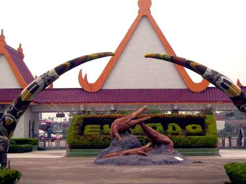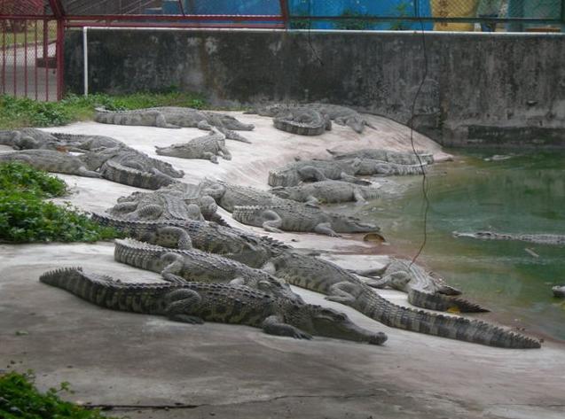 島那金碧輝煌,巍峨壯麗的泰式門樓,門前寬廣的停車場可一次性停放上百輛大巴,進入大門后,有一個十分醒目、高達4米的大型鱷魚雕像——“鱷魚一家”吸收不少游客紛紛在此攝影留念,離雕像百米處,十多個鱷魚池座落在鮮花叢中、綠茵地上、池中養(yǎng)有我們祖先稱為“噴火龍”、“鮫龍”的楊子鱷、泰國灣鱷、馬來鱷、雜交鱷等四個品種,大小近千條,最小的有剛出殼的幼鱷,體型最大的有4米多長,重達千斤。此外還養(yǎng)有一批鴕鳥、狗熊、孔雀、猴子、大蟒蛇、駱駝、驃頭大馬供游人觀賞、合照,大仿古大炮、踏水車、水上單車等有獎娛樂項目供游人玩樂。