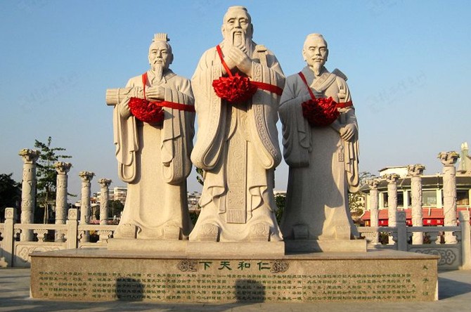 大成殿內(nèi)的四根大石柱上,盤(pán)踞著四條木雕巨龍,栩栩如生。據(jù)說(shuō)這四條龍?jiān)?ldquo;文革”時(shí)期曾遭厄運(yùn),差點(diǎn)被化為灰燼,所幸文物工作者將這幾條龍搶回來(lái)悄悄藏于地下室。但其中一條龍的頭顱已被燒掉,現(xiàn)在大成殿西南面這條龍的頭部是揭陽(yáng)籍省級(jí)木雕藝術(shù)家郭燕騰先生仿制補(bǔ)上去的。大成殿前天井兩側(cè)分別是東西廡,原為供祀歷代繼承發(fā)掘孔子儒家學(xué)說(shuō)而較有成就的歷代先儒的牌位。