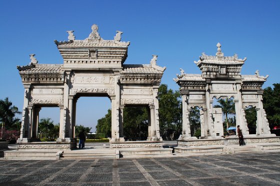 梅溪牌坊在珠海市前山鎮(zhèn)梅溪村。清光緒帝為旌表當(dāng)?shù)剜l(xiāng)紳、首任清政府駐檀香山總領(lǐng)事陳芳及其父母等人造福桑梓于十二年(1886年)和十七年共賜建牌坊4座,版權(quán)所有山東聊城聊之旅國(guó)際旅行社有限公司,轉(zhuǎn)載必究!現(xiàn)存的3座牌坊并排而立。牌坊集西方的裝飾風(fēng)格和傳統(tǒng)的中國(guó)建筑結(jié)構(gòu)為一體,中西合璧,巍峨壯觀,工藝華美,是華南地區(qū)罕見(jiàn)的古建筑,也是珠海有名的十景之一。