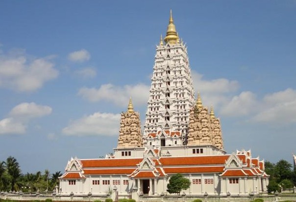 泰國人都叫它“國王廟”。泰國是佛教國家,走進(jìn)泰國每一座寺廟,都可以看到刺眼的金光。彷佛泰國人把所有的黃金都慧贈給他們所虔誠膜拜的佛祖,以至于讓你懷疑泰國是不是已經(jīng)躍然成為發(fā)達(dá)國家或者黃金已經(jīng)不再是稀有金屬。九世皇廟的建筑款式與其它廟宇不同,樸素精巧,沒有其它寺廟的金碧輝煌和規(guī)模宏大,一切遵照國王諭示,以節(jié)簡和樸素為原則,蓋成了佛殿、方丈樓、僧舍、綜合樓、水池、廚房和其他必需用房子,每座建筑都是白色的,表示純潔、漂亮.泰國的九世皇廟位于芭堤雅,是專為當(dāng)今國王建造的未來行宮。泰國民眾 圣潔的舍利子塔。