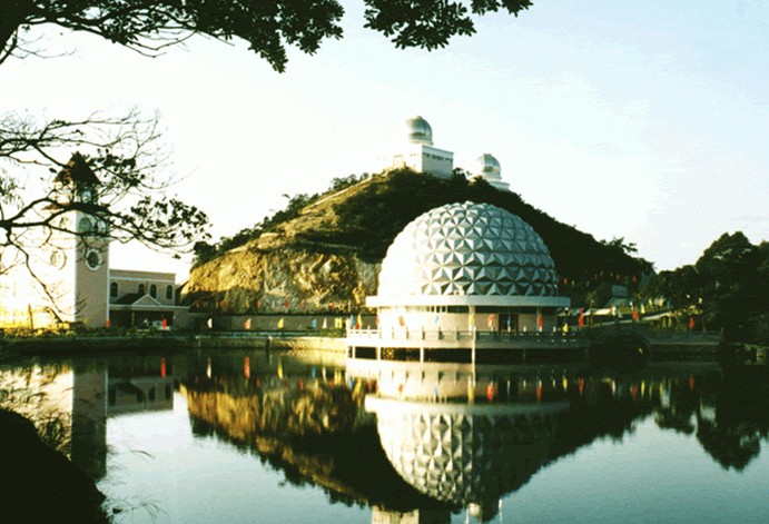 五指峰天文科普園位于廣東梅縣風景秀麗的陰那山旅游度假區(qū)、海拔1000米的茶泉湖畔。科普園由天文景觀、天文展示中心、天象廳、天文臺和天象演播廳等四大部分組成??破請@用于開展青少年科技教育活動的場館建筑面積有6000多平方米。天文科普園以“宇宙與人”為主題,從科學、美學、人文和藝術的全新視角來詮釋起源于遠古、活躍于現(xiàn)代,神秘而又與人類息息相關的天文學。