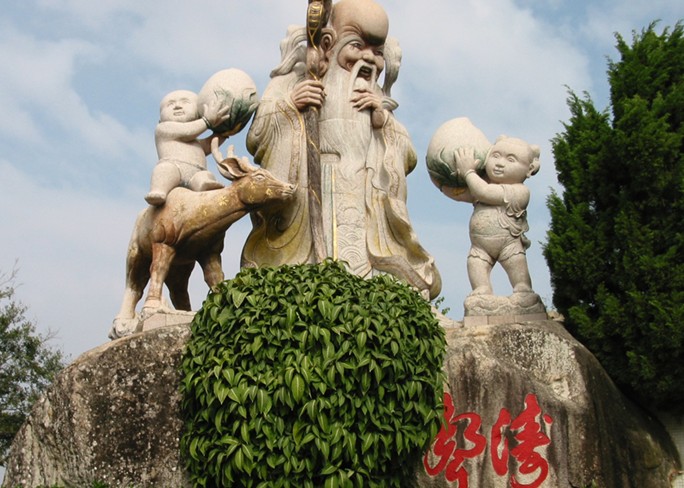 望海觀世音巨型石雕站像屹立在全島峰巔尖山頂上,由白石精雕細刻而成,望海觀世音菩薩巨型站像,莊嚴高聳,露于綠叢,為乘車從海灣大橋而過者所矚目,贊嘆不已。