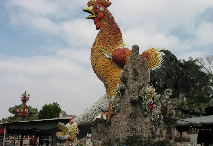 位于媽嶼島北面山麓的古廟是元代漁民從湄洲祖廟請來香火而創(chuàng)建的,后毀,1861年(清咸豐十一年)重建,1928年重修,是粵東沿海最早的媽宮之一。古廟有正殿,三開間,廟內(nèi)保存始建的二根梭型石柱。多少年來,人們出海前都要上島祭拜,帶活雞放生,以至島上雞群滿山,故媽嶼島亦稱放雞山?,F(xiàn)廟前有座雄雞雕塑,色彩斑斕,正是這段歷史的寫照。