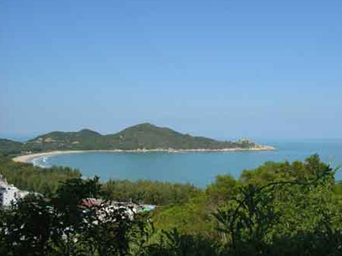 素有“東方夏威夷”之稱的青澳灣,海灣似新月,海面如平湖。金黃柔軟的沙灣綿延2400多米,坡度平緩,沙質(zhì)潔凈,一直延伸至水下百米以外,無礁石無淤泥;海水無陵質(zhì)無污染,潮漲潮落不改澄碧顏色;背倚險峻高山,山上奇石嶙峋;環(huán)抱海灣的是縱深百米的防風(fēng)林帶,四季郁郁蔥,同晶瑩金黃的沙灣、湛藍(lán)透亮的海水,形成了分明的立體層次,是廣省兩個A級沐浴海灘之一。
