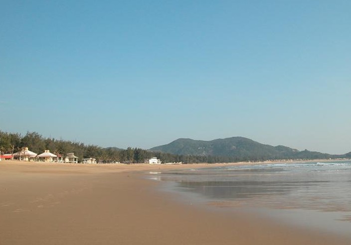 青澳灣,灣口朝東南,灣腹很深,灣弧達(dá)2.9公里。嶺頭新建的一座涼亭,名曰:“覽月亭”。成排成片的木麻黃樹循著孤形沙灘蔓延開去。海浪、白沙、林帶以及林中新筑的各式亭臺樓閣,構(gòu)成了色彩斑斕的海市蜃樓圖景。據(jù)說沙灘長達(dá)2.4公里,沙帶寬近百米。沙灘向海延伸坡度平緩,數(shù)十米內(nèi)海水僅米余深,是海浴的理想場所,被譽(yù)為“泳者天池”,是廣東省僅有的兩個A級海濱浴場之一。