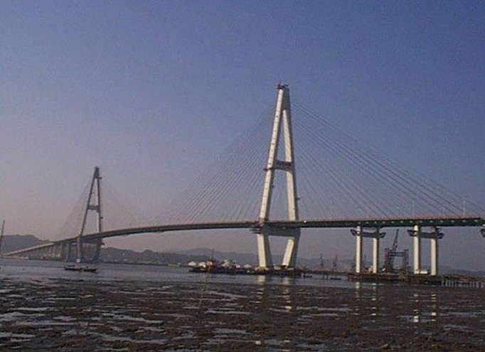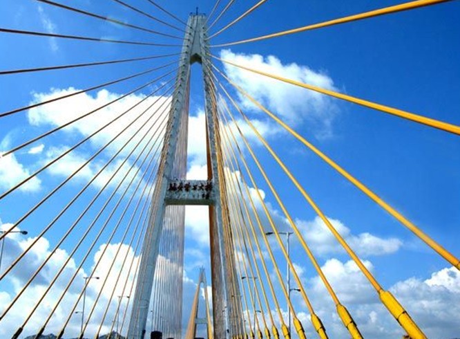汕頭礐石大橋南起國道324廣汕公路,跨越汕頭海港,北與國道206線聯(lián)接,是繼汕頭市市區(qū)東部建成的海灣大橋后動工興建的第二座特大型跨海大橋,總概算人民幣12.5億,大橋正橋全長2865米,全橋包括互通立交,引橋匝道、引道總延長米為5976米。全橋六車道,兩側(cè)加設(shè)人行觀光道,橋面總寬30.5米。主塔塔身高148米,主橋主跨518米,通航凈高38米,可通航2萬噸級船舶。大橋主橋鋼絞線斜拉索和鋼箱梁與PC梁混合梁的結(jié)構(gòu),為我國首例,技術(shù)先進(jìn),氣勢磅礴,大橋于1998年12月建成。礐石大橋的建成將與海灣大橋形成跨海交通環(huán)線,對推動和改善汕頭市投資環(huán)境和發(fā)展經(jīng)濟(jì)起到重大的作用。