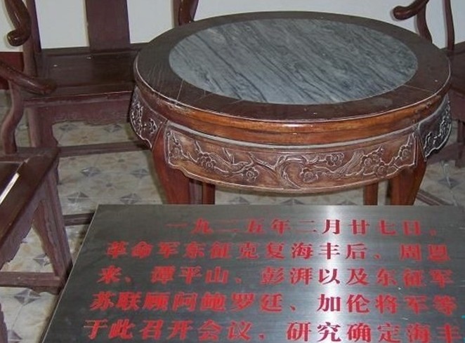 由于彭湃投身革命運動,彭家的家財家產(chǎn)和故居,都為革命作過貢獻?!逗XS文物志》中記載:1925年3月,廣東國民革命軍第一次東征到達海豐后,周恩來同志和革命軍的蘇聯(lián)軍事顧問鮑羅廷及加倫將軍曾在此住宿,一起研究工作。