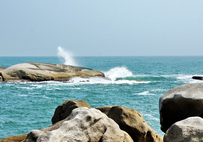 紅海灣與碣石灣交接處突入海的一個(gè)半島,素稱“粵東麒麟角”。又稱巖島,因?yàn)樗怯山笌r構(gòu)成的。海浪沖擊與自然風(fēng)化的鬼斧神工,造就了奇形怪狀、橫豎各異的礁巖,巨浪撲來,激起沖天浪柱,海浪從空跌落,化作浪花朵朵,猶如“卷起千堆雪”。面對(duì)這浩瀚碧海,目睹這潮來潮去、排浪巨變,不禁感到豁然開朗,豪氣萬千,漸漸忘卻枯容,拋開煩惱,頓悟“忍一時(shí)風(fēng)平浪靜,退一步海闊天空”的人生至理。
