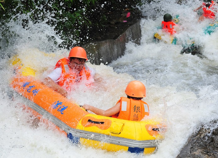 清遠黃龍峽漂流河道兩岸群山奇石綿延,植被蔥翠,郁郁蔥蔥,游客穿石繞壁、凌波逐浪之間亦免除陽光暴曬之苦,全程舒適寫意,充分領略大自然生態(tài)之壯美。清遠黃龍峽漂流全程約1.5小時,每日接待量約8000人次,游客可乘景點中巴或旅游大巴直接到達漂流起點,大大縮短了等待時間。它是全國唯一的雙S回旋彎賽道及多個精心賽道設計讓游人真正體驗到挑戰(zhàn)自我的樂趣,而整個河道經(jīng)年初精心整葺,煥然一新,水質大幅提升之余亦做足安全保障。